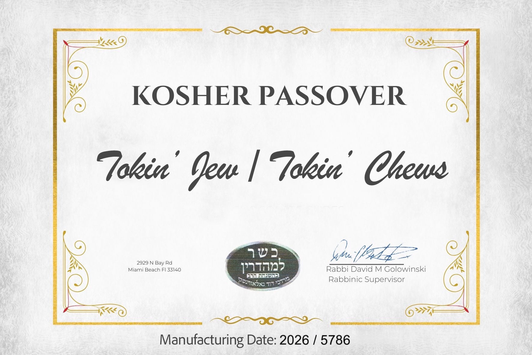 Limited edition and timed for the holidays, meticulously created with high Jewish standards in mind.